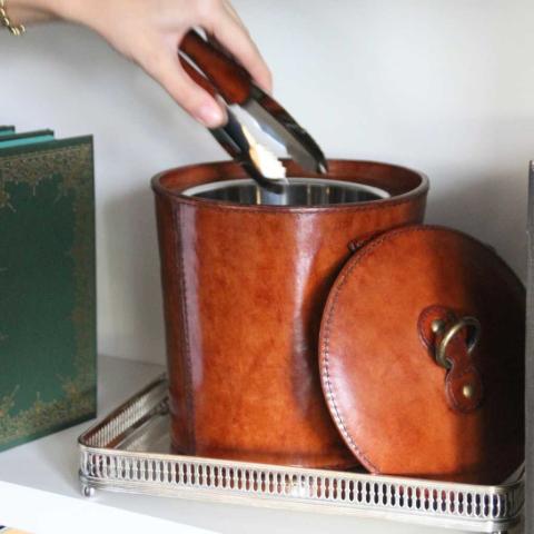 Cubitera de piel con pinzas.