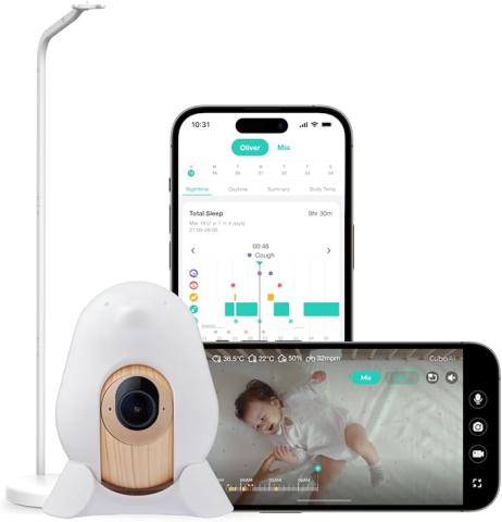 CuboAi 2025 New Model Smart Baby Monitor 3: Sleep Safety Notifications for Covered Face & Roll over, 2.5K QHD Night Vision Camera, 2-Way Audio, Humidity Sensor, Lullabies (Floor Tripod Set) : Amazon.nl: Baby Products