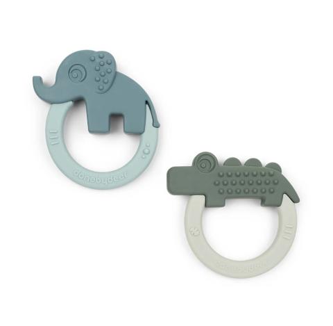 Die Beißringe von Done by Deer sind unverzichtbar in den jungen Jahren des Kleinkinds. Das 2er-Set lässt sich optimal in kleinen Händen halten und bietet dank unterschiedlicher Formen und Texturen ideale Abhilfe bei juckendem Zahnfleisch.