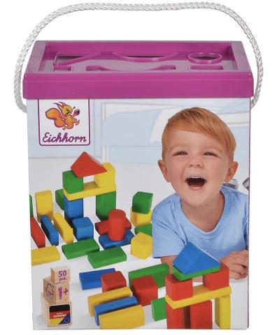 Eichhorn 100050161 Pack of 50 Coloured Wooden Building Blocks in Storage Box with Cord and Sorting Lid for Children from 1 Year : Amazon.com.be: Toys