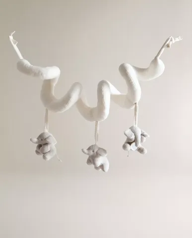 Activity spiral with three elephant soft toys, each performing a different action to stimulate your baby’s curiosity. Although they look similar, their different shapes encourage sensory exploration. It easily attaches to most baby carrier handles and pushchair bars. - New in - KIDS AND BABY - BABY | Zara Home België / Belgique