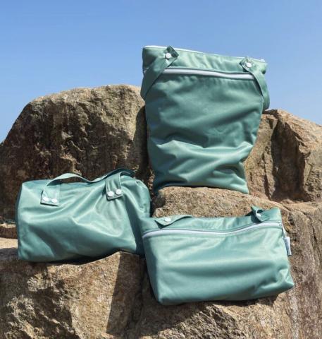 Removable double handles on all 3 reusable bags so they can be conveniently attached to a stroller or travel system, the side of a cot, towel rack or to a backpack or diaper bag