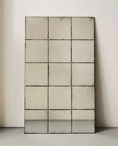 Espejo de pared de tamaño grande con efecto envejecido y detalle de flor en la cuadrÃcula.