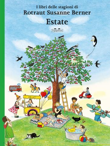 È arrivata l’estate, quindi i gelati, e in piazza c’è il mercatino delle pulci. Qualcuno ha organizzato una festa di compleanno e Daniela sta attraversando la città con un grande pacchetto sottobraccio: chi lo scarterà? I bellissimi Libri delle stagioni di Rotraut Susanne Berner terminano con Estate. Un’opera inesauribile, senza parole, per raccontare le stagioni nella medesima cittadina. La grande illustratrice tedesca, vincitrice dell’Hans Christian Andersen Award 2016, conduce, infatti, il lettore in una passeggiata lungo la stessa strada, in momenti diversi dell’anno e della giornata.
