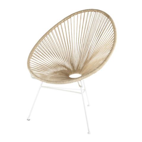 Posé sur une structure à trépied en métal blanc, ce fauteuil est doté d'une assise en cordes de coton. Original et design, ce fauteuil à...