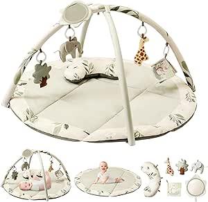 Fortella Gimnasio para Bebé, Tapete de Actividades, Manta de Juegos Plegable con 5 Juguetes Colgantes, Espejo y Almohada -Alfombra Acolchada para el Gateo, Desarrollo Infantil, 0-3-6-12 Meses(Verde) : Amazon.es: Bebé