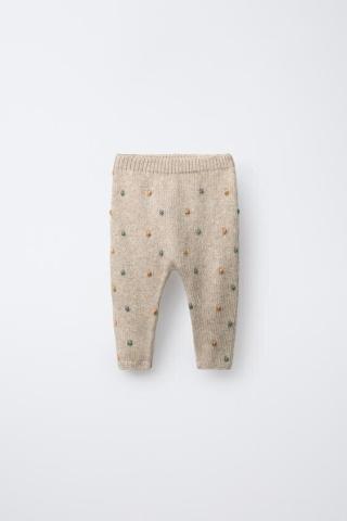 Gebreide broek met elastische tailleband. Bolletjesdetail.