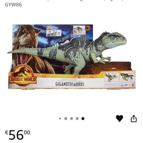 Ce produit est extrait d'une liste de cadeaux (Anniversaire, Noël, ...) déposée sur Kadolog. Kadolog permet de créer des listes de cadeaux (Anniversaire, Noël, ...) en toute liberté. Il est possible d'ajouter toutes vos envies cadeaux et de recevoir les dons directement sur votre compte. Avec les dons reçus, vous êtes alors libre d'aller acheter vos produits (comme ce 'Giganatosaurus ') où et quand vous le souhaitez.