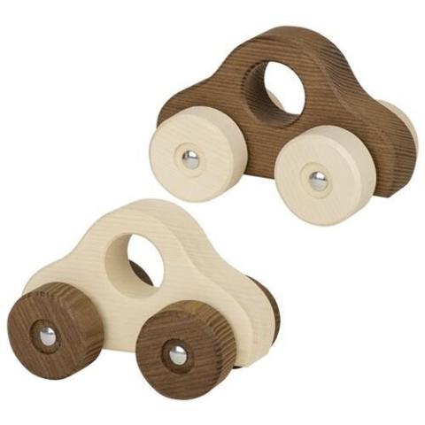 Een kleine, robuuste houten grijpauto van het Duitse merk Goki. Het autootje is makkelijk vast te pakken door het gat in het midden van de wagen. Het simpele, rond afgewerkte design van het speelgoed maakt het ideaal voor kleine kinderen. De ronde v
