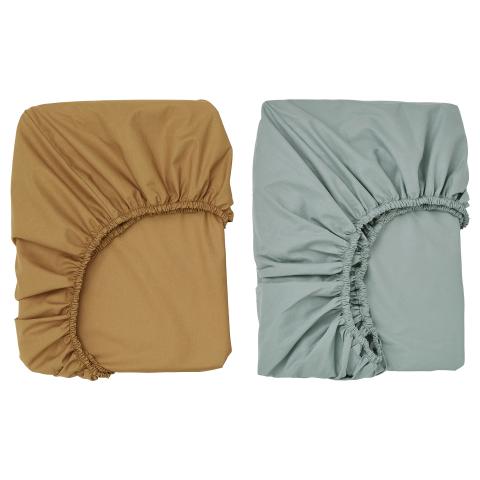 Vous pouvez facilement assortir ces deux draps housses unis avec d'autres textiles de la collection GULDVÄVARE. Ils sont fabriqués en coton certifié GOTS, doux et agréable pour bébé.