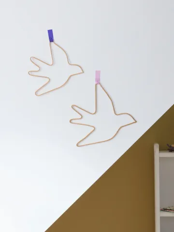 Lot de deux hirondelles en metal doré pour decorer les murs de la chambre d’Henri