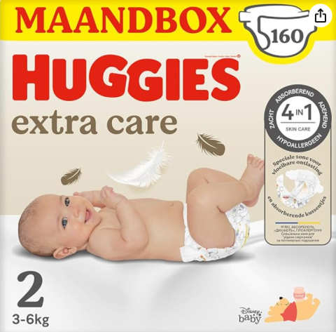 Huggies Extra Care - Couches bébé Taille 2 (3-6kg) - 4 paquets de 40 couches - hypoallergénique et testé dermatologiquement - avec des motifs Disney : Amazon.com.be: Bébé et Puériculture