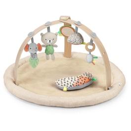 The Every Season Plush Lambswool activity gym for even more comfortable playtime. This unique play mat, made of genuine Australian lambswool, provides comfortable playtime during baby's first months without disrupting their body temperature. The soft, thick wool feels wonderful, is comfortable for tummy time, and stimulates your little one's sensory development. Baby can play on the mat in three ways: lying on their back, tummy, or sitting. The mat is also reversible, and its modern, top-notch design complements any interior, allowing you to create a comfortable play space for baby anywhere. The wooden SlimFold toy bar is easily removable and comes with five removable toys: two sensory plush toys, a wooden ring with sensory ribbon, and two mirror toys.