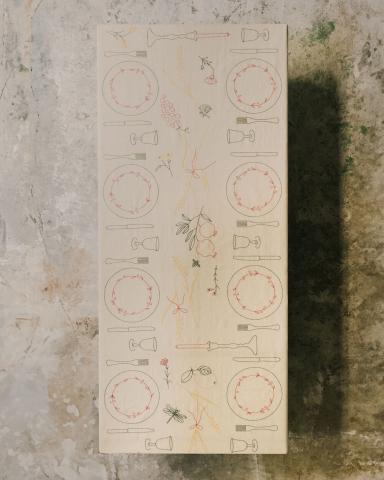 Nappe unique brodée à la main, inspirée par le charme d’un décor champêtre. Ses créations évoquent les épis de blé dorés et les fruits de saison dans une ambiance chaleureuse et festive. Chaque détail invite à savourer des moments précieux autour de la table. - Brodée à la main. - Fabriquée dans notre atelier à Marseil