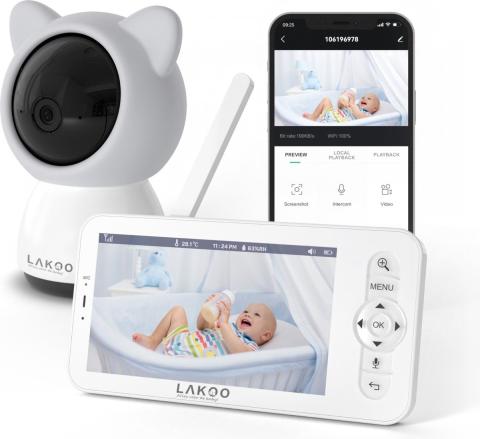 Whether you're in another room in the house, at work, or even on the road, the LAKOO Baby Monitor with APP and Extra 5-Inch Monitor with cute cat ears gives you the peace of mind you deserve. Simplify your life and care for your loved ones with this cute and advanced baby monitor from LAKOO.