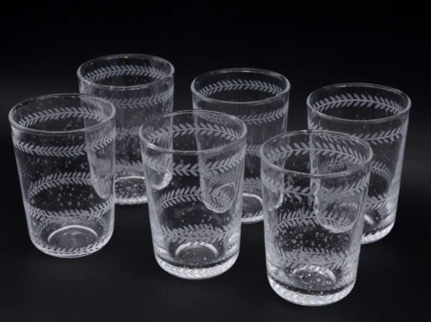 Hand-Blown and Etched Glasses made in Portugal Set of 6 9.8 x 7 cm