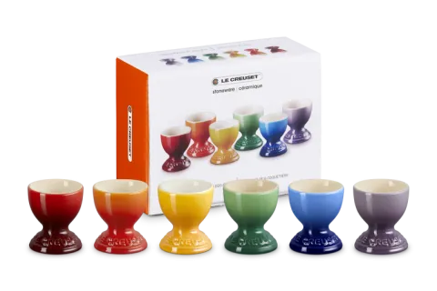 Boiled eggs deserve a stylish place of honor on the table. These cheerful ceramic egg cups from our Rainbow Collection come in six vibrant colors: Cherry Red, Orange Red, Nectar, Bamboo, Azure, and Ultra Violet, adding a cheerful splash of color to every breakfast.