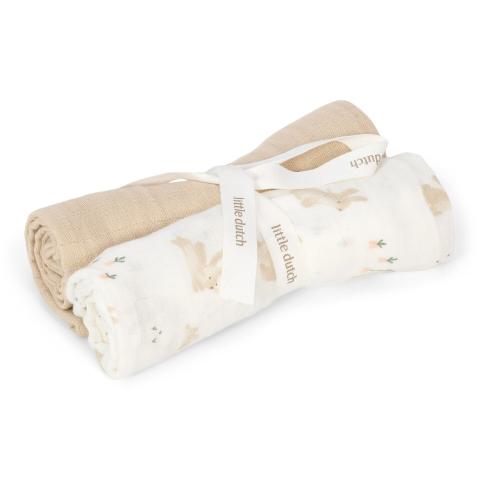 Surround your little one with softness and love with these versatile muslin swaddle blankets. Ideal for after bathing, as a base during changing, or as a burp cloth during feeding. This set consists of one swaddle with a cute design and one plain cloth. Made from 100% organic cotton, it is soft, absorbent, and quick-drying. A multifunctional must-have that you don't want to miss (and neither does your little one)!