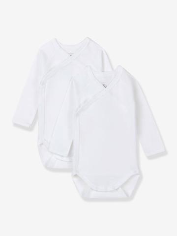 Grâce à leur large ouverture, ces 2 bodies croisés sont parfaits pour les nouveaux-nés. Réalisés en côte souple et agréable à porter, la matière emblématique de la marque Petit Bateau, dans un coton biologique pour