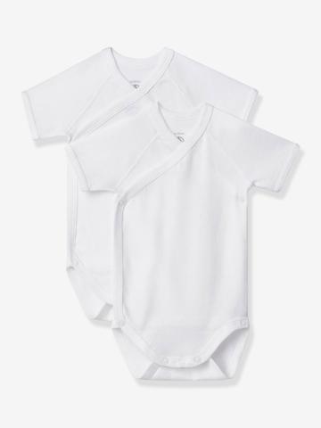 Lot de 2 bodies naissance manches courtes en côte, la matière iconique de Petit Bateau.