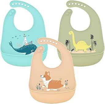 Lot de 3 Bavoir en Silicone d'Alimentation Étanche avec Ramasse-miettes - Facilement Lavable, Super Doux, Réutilisable pour Tout-Petits Mangeant - Vert : Amazon.fr: Bébé et Puériculture