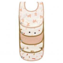 Le lot de 5 bavoirs en éponge imperméable de Lässig convient pour les enfants de 3 à 18 mois.