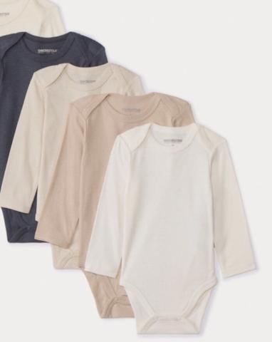 Lot de 5 bodies manches longues en rib. Encolure ronde. Emmanchures US. Entrejambe pressionné. Coloris uni différent selon le modèle :
