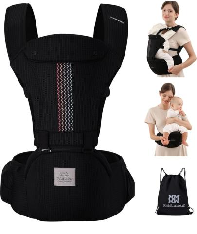 Bebamour Porte bébé Ergonomique avec Siège à Hanche/Pur Coton Léger et Respirant/Multiposition, Baby Carrier for 0-36Months(Air Black) : Amazon.com.be: Bébé et Puériculture