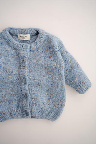 Strickjacke aus einem Wollgemisch zertifizierte Wolle aus Italien kuschelweich, nicht kratzend wärmend, temperaturausgleichen Farbe: himmelblau mit bunten Confetti
