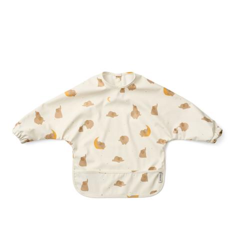 Lightweight cape bib for babies and toddlers learning to eat on their own. The elasticated cuffs ensure a snug fit, and the front pocket catches spilt food. Crafted from durable, recycled polyester, the cape bib is easy to clean and can be folded up for compact storage at home or on the go. Practical cape bib with long