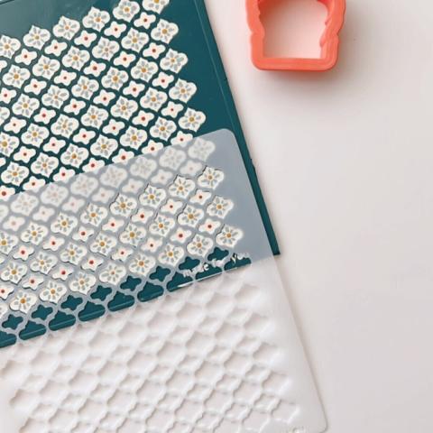Stencils This stencil is produced in house. Each texture sheet measures 5" x 5"  Use a rolling pin or clay machine to imprint design May also be used as a stencil for applying pastels or mica powders to the clay. These sheets are reusable Should be wiped down immediately after use Do not heat or bend texture sheets