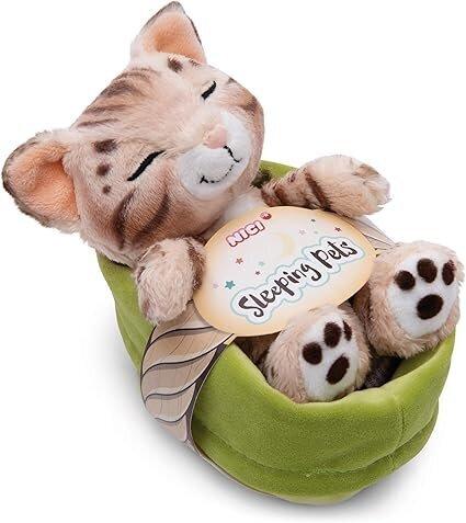 NICI 49747 Bengal Cat Soft Toy 12 cm Sleeping in Basket for Cuddling and Loving Sustainably Produced from Recycled Materials : Amazon.fr: Toys & Games