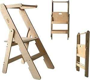 Opvouwbare houten leertoren - Opvouwbare leertoren - Houten keukentoren - Opvouwbaar keukengereedschap - Montessori leertoren - Kleine leertoren (natuur) : Amazon.com.be: Speelgoed
