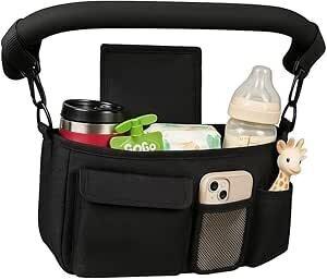 Organisateur universel pour poussette avec porte-gobelet, grand panier de rangement,