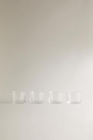 Short glass tumblers with a plain design.