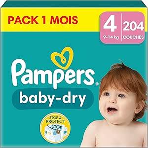 Pampers Baby-Dry Size 4, 204 Nappies, 6 kg-14 kg, With a Stop & Protect Pocket on the back of the nappy for up to 100% leak-free night : Amazon.com.be: Baby Products