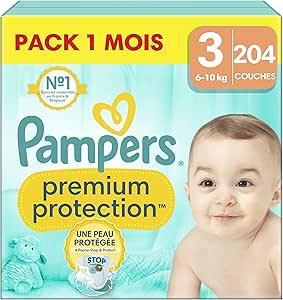 Pampers Premium Protection Size 3, 204 Nappies, 6 kg-10 kg, Double Protection for Skin and Against Leaks, Pack 1 Month : Amazon.com.be: Baby Products