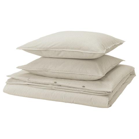 Parure de lit SOLFIBBLA : housse de couette et 2 taies, blanc beige/rayure, 240x220/50x60 cm