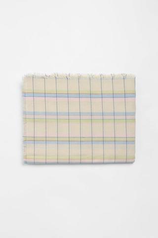 The Pastel tablecloth brings with it precisely this familiarity, images and colors woven into the collective memory. Its linen and cotton cloth is a warm, sandy white on which thiner and then wider stripes run to form a pastel-colored tartan. But its identity is not only resolved in the domestic sphere, as its inspirat