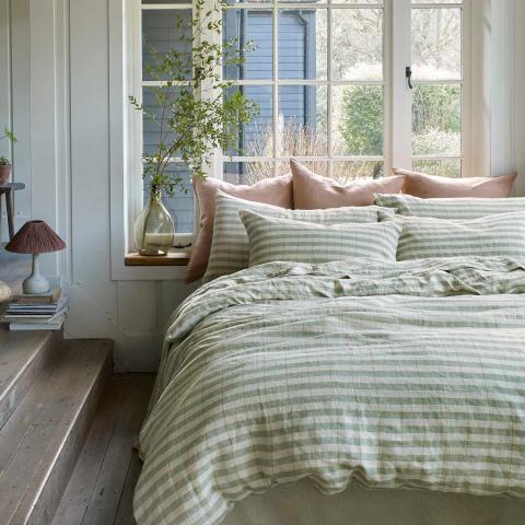 Made in Portugal from 100% European linen, our new range of check stripe linen bedding offers a charming Piglet take on a heritage-style pattern.