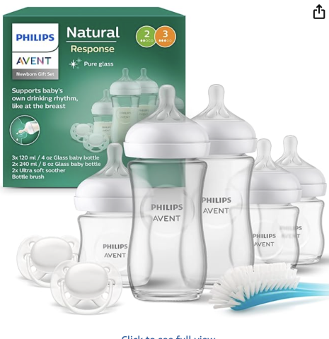 en toute liberté. Il est possible d'ajouter toutes vos envies cadeaux et de recevoir les dons directement sur votre compte. Avec les dons reçus, vous êtes alors libre d'aller acheter vos produits (comme ce 'Philips AVENT Natural Response Glass Baby Bottle Set for Newborns - 5 Bottles, 2 Ultra Soft Soothers 0-6 Months, Bottle Brush, BPA-Free