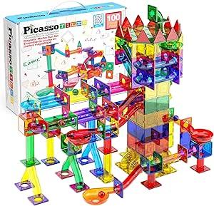 PicassoTiles Marble Run Lot de 100 jouets magnétiques pour enfants de 3, 4, 5, 6, 7, 8 ans et plus : Amazon.com.be: Jouets