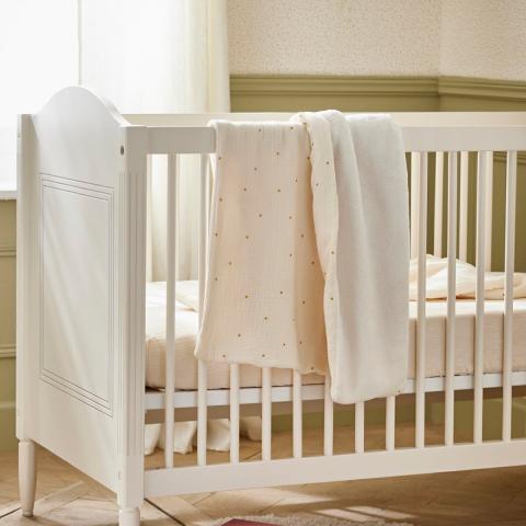 1 face en gaze de coton, 1 face en micro-polaire. Plaid tout doux pour réchauffer les tout-petits dans le lit, le cosy ou la nacelle. Dim. 100 x 70 cm env.