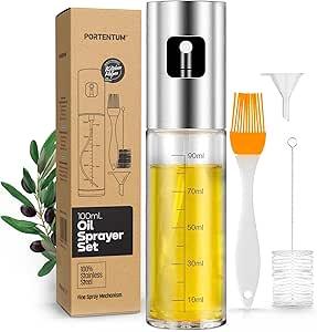 PORTENTUM Flacon pulvérisateur d'huile d'olive en acier inoxydable de 100 ml, bouteille d'huile anti-fuite avec accessoires, pulvérisateur d'huile pour cuisine, barbecue, salade et friteuse à air : Amazon.com.be: Cuisine et maison