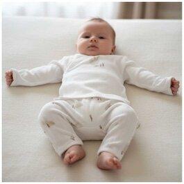 This prenatal clothing set includes a comfortable wrap-over shirt and matching pants. The set features pants with a beautiful all-over bunny print on a padded double layer and a wrap-over shirt with a bunny print. The wrap-over closure makes the shirt easy for your little one to put on and take off. The elastic waistband makes the pants easy to put on.