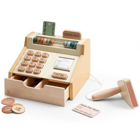 Wil je pinnen of contant betalen? Het kan allebei met deze houten speelgoedkassa van het Deense merk Sebra. Voor 22.00 uur besteld, morgen in huis.