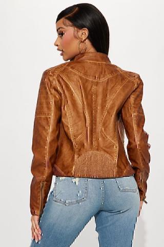 Buy Shotgun Rider Washed Faux Leather Jacket in LightBrown from Fashion Nova.