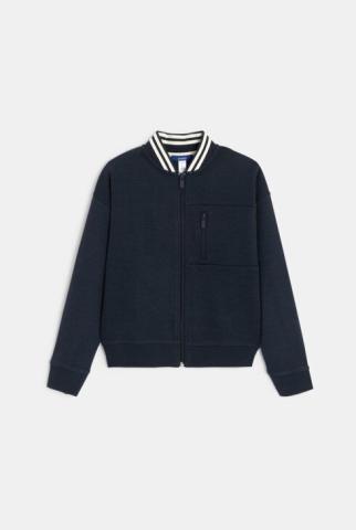 Allure de teddy et esprit campus : ce sweat-shirt zippé peut aussi faire office de blouson à l'inter-saison. Molleton doux et épais. Coupe légèrement resserrée à la base. Col rond montant animé d'un bord côtelé rayé. Ouverture zippée. Manches longues. 1 poche poitrine zippée. Bords côtelés.
