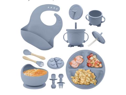 TTSTOIEE Baby Plate, 8 Pieces, Baby Meals (Spoon, Fork, Bowl, Bib, Cup) | Anti-Fall Baby Silicone Bib, Blue : Amazon.com.be: Baby Products