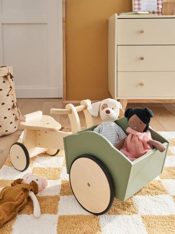 Parfait pour développer la motricité et l'équilibre de votre enfant ! Ce porteur cargo avec un bac de rangement à l’avant lui permettra également de transporter tous ses jouets préférés !